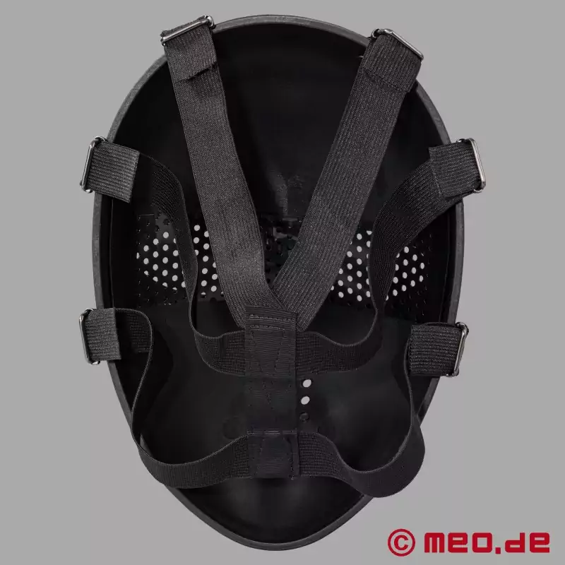 Diese Maske ermöglicht nicht nur einen angsteinflößenden Look, sondern auch das Ausleben von Rollenspielfantasien sowie die vollständige Kontrolle über den Sub.