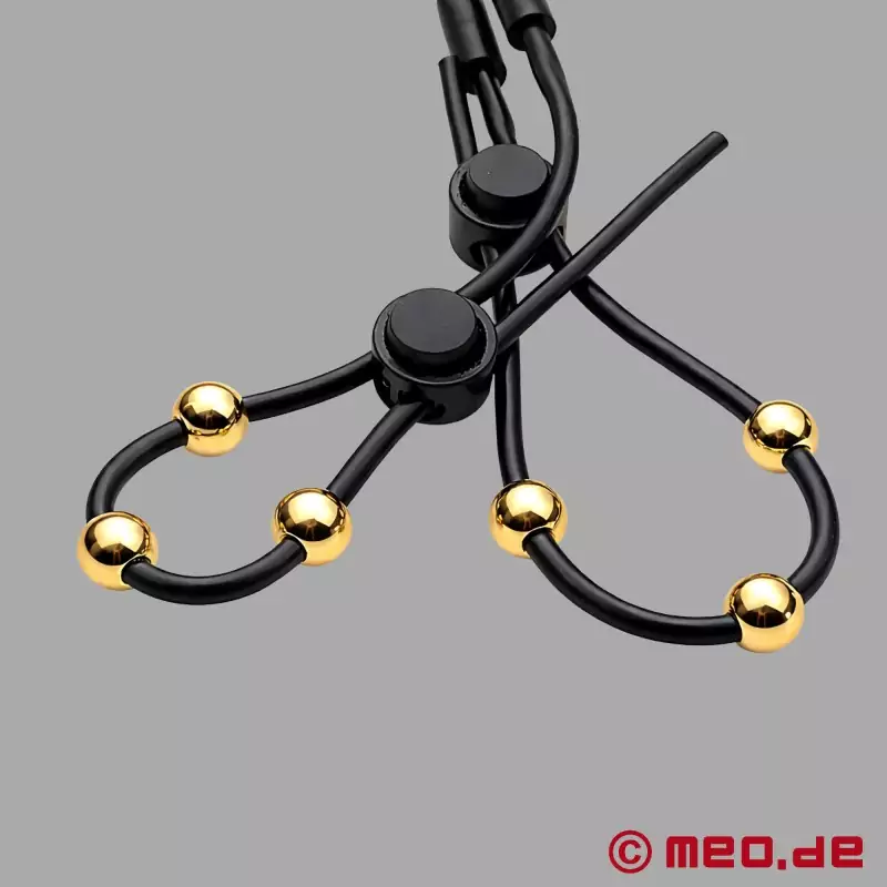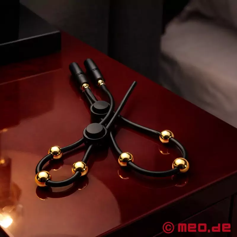 Die in der Größe variablen, metallischen Schlaufen sind elektrisch leitend und können somit als Elektroden zur Stimulation von Penisschaft, Peniswurzel, Eichelkranz und Hodensack verwendet werden. Sie können bequem umgelegt und anschließend auf die passende Größe zugezogen werden