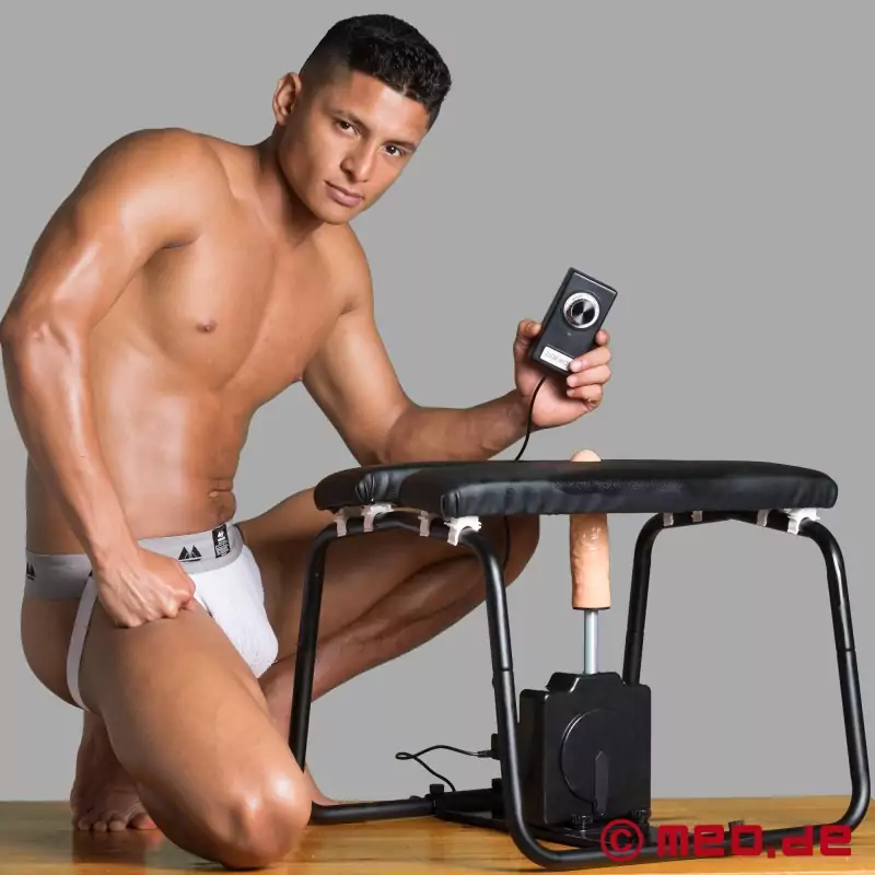 Bei unserem Sexmöbel mit Sexmaschine „Banging Bench“ hast Du die Wahl der Qual! Entscheide Dich zwischen einem flexiblen, schwingenden Sitz oder einem stabilen, gepolsterten Sitz... dann wähle zwischen einer Sexmaschine, Deinem Lieblingsdildo oder ganz einfach dem Gesicht Deines Partners!