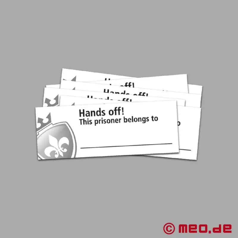 Ein robustes Metallschloss inklusive zweier Schlüssel und fünf Kunststoff-Einwegsiegel verhindert jeden unerlaubten Versuch, den Peniskäfig zu entfernen. Zusätzlich erhält der Keyholder zehn Besitzschilder mit dem in englischer Sprache geschriebenen Aufdruck: „Hands off! This prisoner belongs to ___“. Damit wird jeder heimliche Ausbruchversuch unmöglich – absolute Kontrolle garantiert!