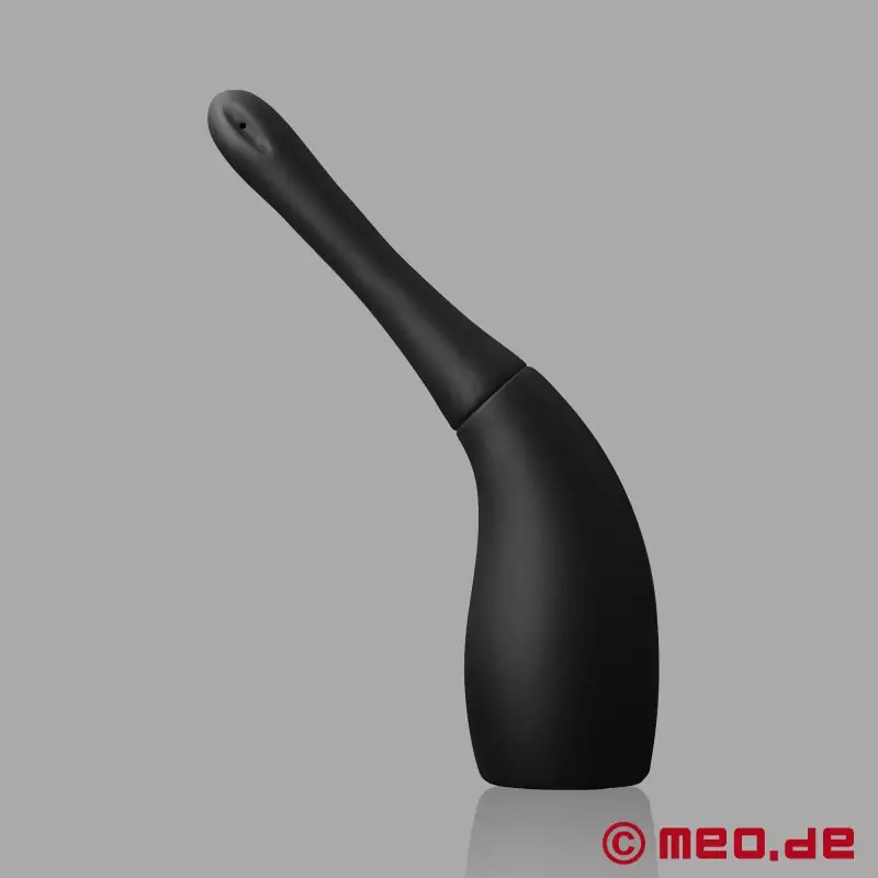 Fill the bulb with lukewarm water (optionally an isotonic saline solution). Lightly coat the silicone nozzle of the anal douche with water-based lube (e.g., Aquameo™). Expel air from the bulb, insert the nozzle slowly, squeeze steadily, wait a moment, then empty on the toilet. Repeat as needed until the water runs clear. Tip: Better two small rinses than one large one - gentle works best.