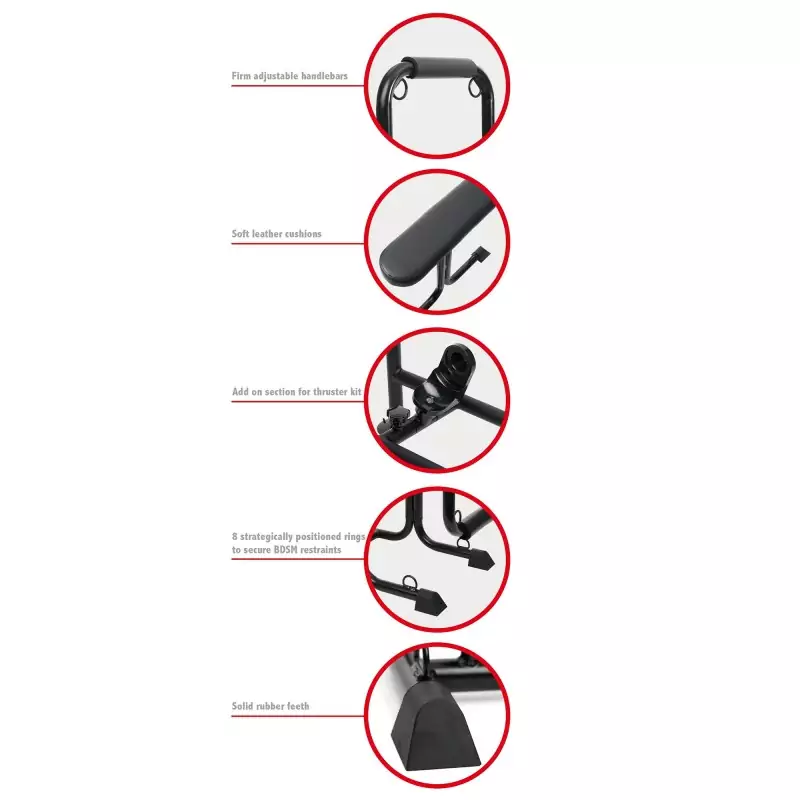A solid metal frame and heavy rubber feet keep the Bondage-Sex-Seat™ firmly in place, even during rougher play. With a load capacity of up to 150 kg (330 lb), it’s a dependable choice for scenes where control, body posture, and easy access are the whole point - from restraint to penetration, oral play, and strap-on use.