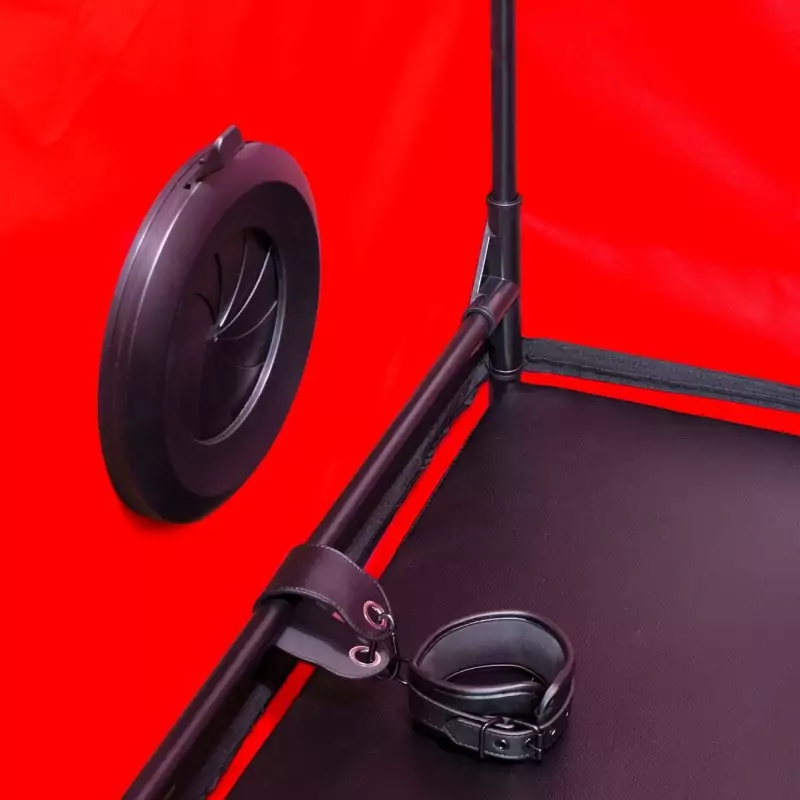 Entry is quick and easy via the side zippered door. Two built-in fans and LED lighting provide airflow and illumination inside - or, if you prefer, near-total darkness for heightened sensory play. A soft floor mat ensures comfort, even during extended sessions.