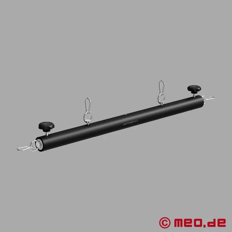 The Haftanstalt™ QuickBar eXtreme™ is the telescoping bondage spreader bar that locks your sub wide open and keeps them exactly where you want them. Dial in your width from 23.6-43.3 in (60-110 cm), clip on wrist restraints and/o ankle cuffs, and push your BDSM scenes deeper - front, back, overhead or full yoke/pillory style.