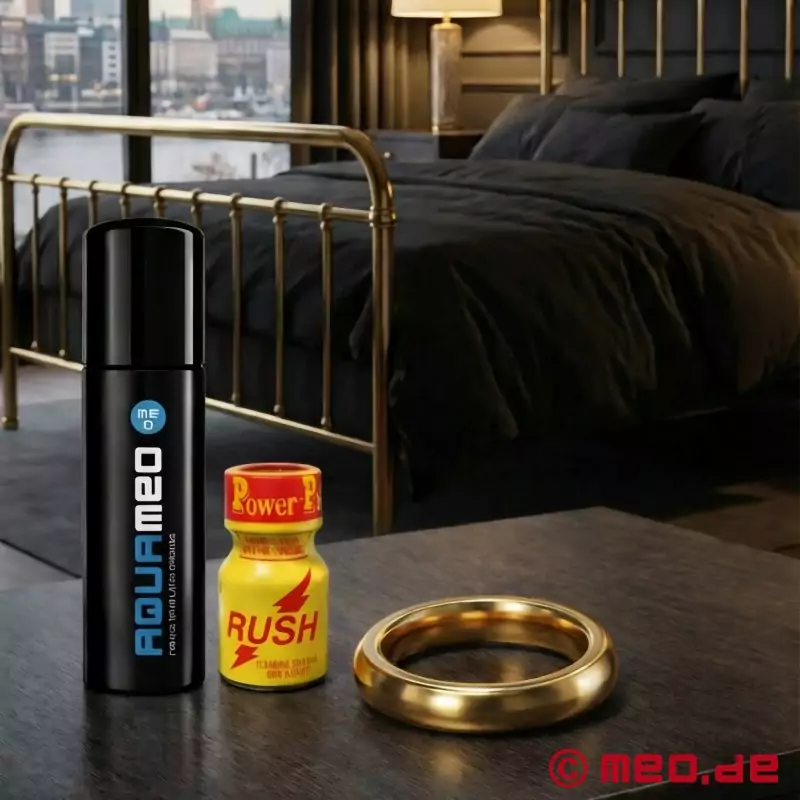 To pull the ring over the penis and balls, we recommend our water-based lubricant Aquameo. Instructions for use are included with each cockring. After use, clean the ring with our InstaClean spray.