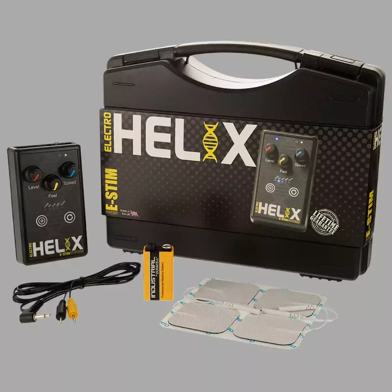 The ElectroHelix™ is the latest in the range of power boxes from E-Stim System. E-Stim Systems started in 2004 with the original Series 1, which has become a classic and the mainstay of the E-Stim Systems Intro2Electro Range. It has introduced many thousands of people to the pleasures the electroplay can bring. But like many things, over time people want just that little bit more, maybe smaller, and perhaps with more features - The result is the ElectroHelix™, or Helix for short.