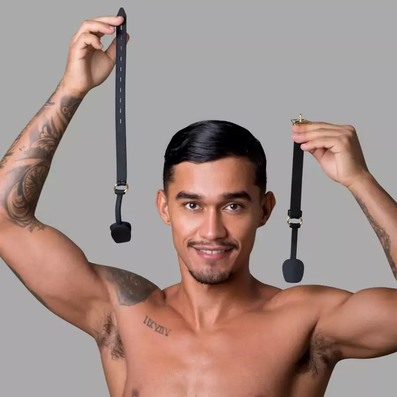 The “invisible” gag provides a new but very effective form of gagging while at the same time allowing the mouth and tongue to be part of the action. What you then shove into their wide-open mouth is entirely up to you - Your sub is certainly not going to be able to object.