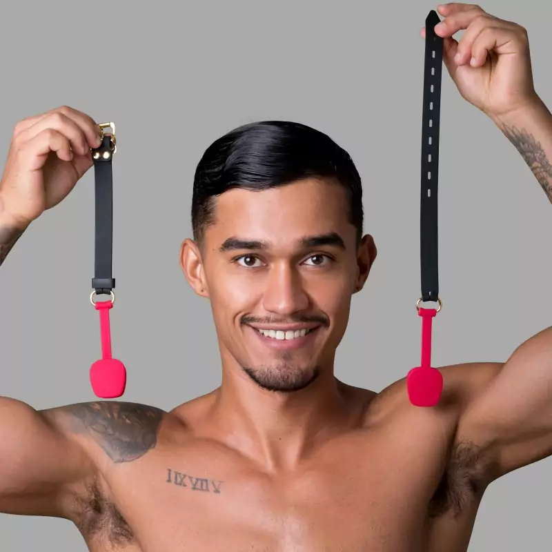 The patented design is perfectly anatomically adapted to the shape of the mouth. The pleasantly soft silicone padding keeps the mouth open and accessible. In contrast to traditional O-ring gags, there is no ring in the way and your sub cans even stick out their tongue to pleasure you orally with a blowjob. Thanks to the adjustable neck strap, you can adjust the gag optimally to any head size.