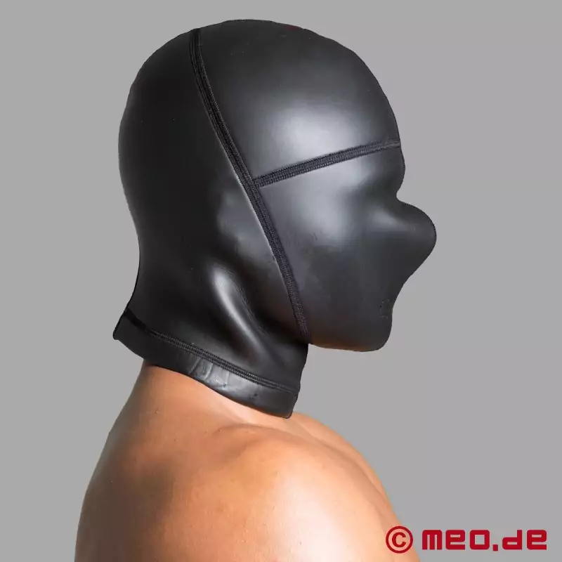 Our Neoprene Bondage Hood isolates and restricts the wearers sight due to the eye- and mouth areas consisting only of some small perforations. The mask sits skin tight and is more comfortable to wear than masks made from latex, spandex or leather. This design is made for sensory deprivation.