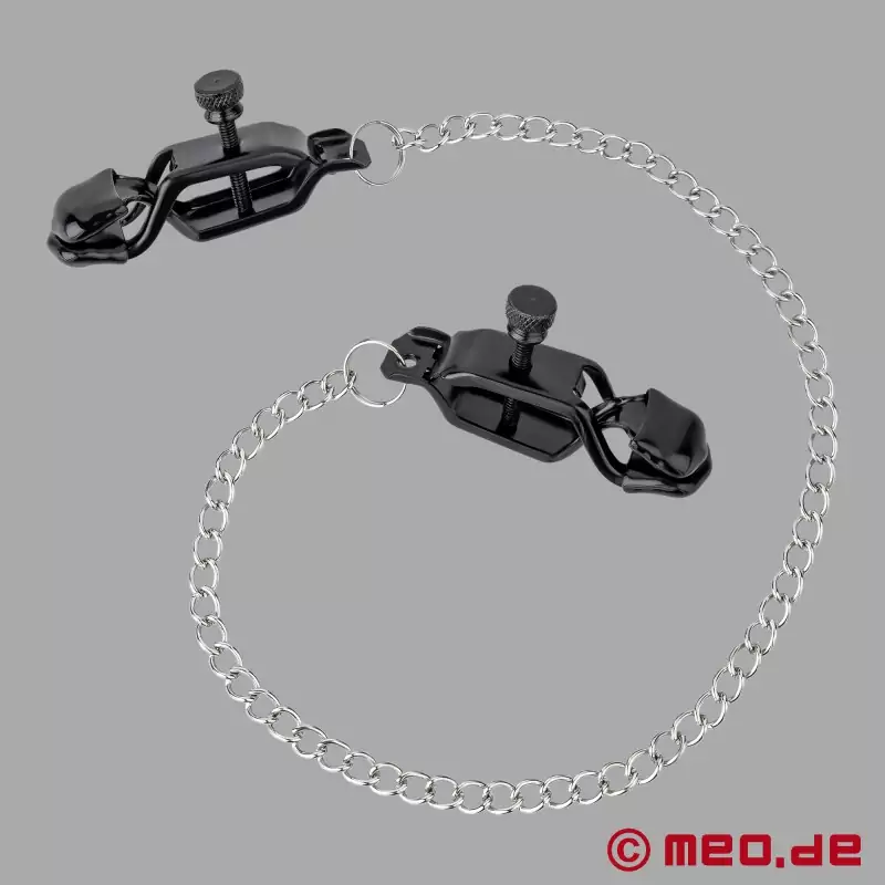 The Black Tiger™ Nipple Clamps by MEO® Germany bring unapologetic pressure to your most sensitive spots. Adjustable screws let you fine-tune the intensity - from a teasing pinch to brutal bite - while the sleek chain demands attention. Made for those who crave control, visual impact, and deep stimulation, these clamps deliver pure pressure and total pleasure. Add weights, pull harder, and push your limits. These aren’t just nipple clamps - they’re a statement.