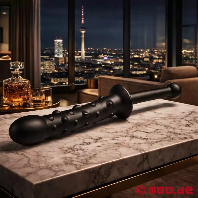 The Cumelot® is a double-ended prostate dildo designed for anal use. It is ideal for stimulating the submissive partner, for example during chastity play or in scenarios where a hands-free orgasm is desired.