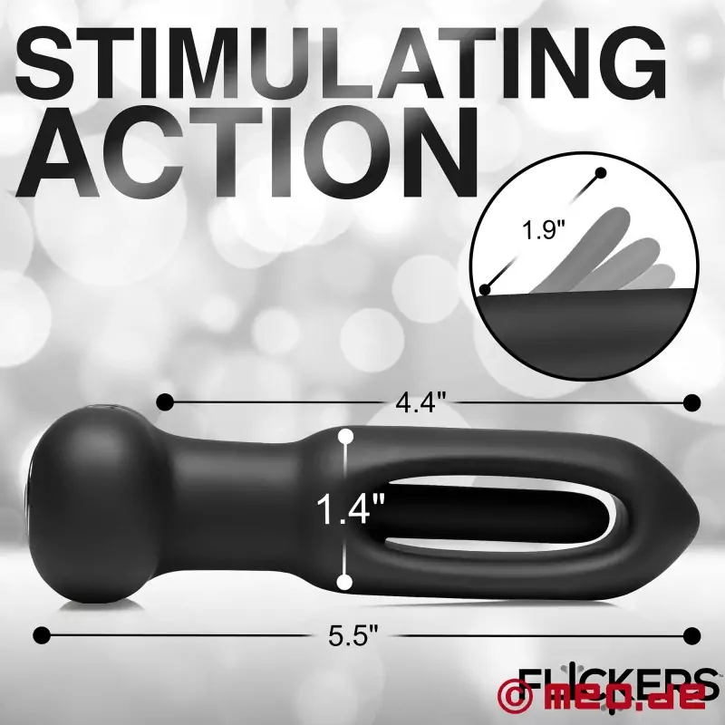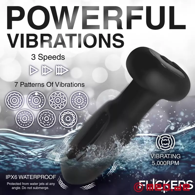 This big prostate stimulator will fill you with both size and sensation! The powerful vibration buzzing throughout the thick shaft combines with a flicking, silicone arm that nestles in the center and flicks your prostate or A-spot with 3 speeds and 7 patterns of vibration and flicking!
