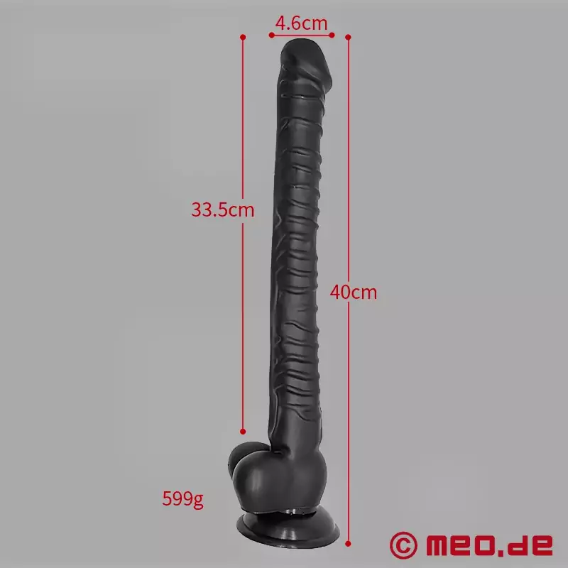 Sometimes, it does come down to length! Our ANALGEDDON ® anal dildo not only convinces through its impressive length, it also has pronounced grooves that ensure a sensational feeling. The pronounced glans specifically stimulates the G-spot and prostate and gives you exactly the satisfaction you desire. The skin-friendly material is pliable and yet stable, so that extreme pleasure is guaranteed. Our longer dildo is always there when you need it and is ready to convince you - whether in the bedroom, the shower or in completely different places.
