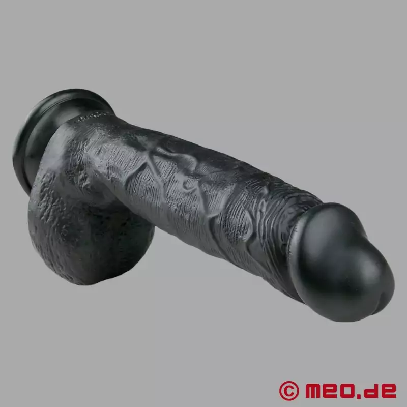 Ready to take on Terrance? This 9 inch (22.5 cm) black beauty is thick, long, and sculpted for deep, intense penetration. With 7 inches (18 cm) insertable length and a bold 1.9 inch (4.7 cm) girth, Terrance stretches you wide and hits you hard. Every bulging vein and textured ridge is designed for total satisfaction. Suction it down or strap it on – whether you ride solo or invite a partner for a wild threesome fantasy, this lifelike cock is always ready to dominate your hole.