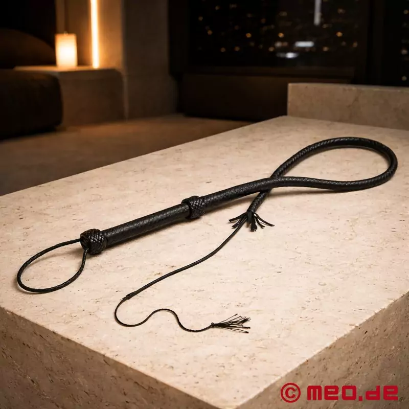 Our Single Tail Whip, also called a bullwhip, is an excellent all-round whip for BDSM use. It hits the target accurately because of the stiff handle and can be well dosed with a little practice.