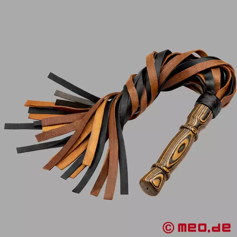 Die Zweifarbigen schweren Lederriemen geben eine tolle Optik und gibt dem Flogger einen tollen Charakter.