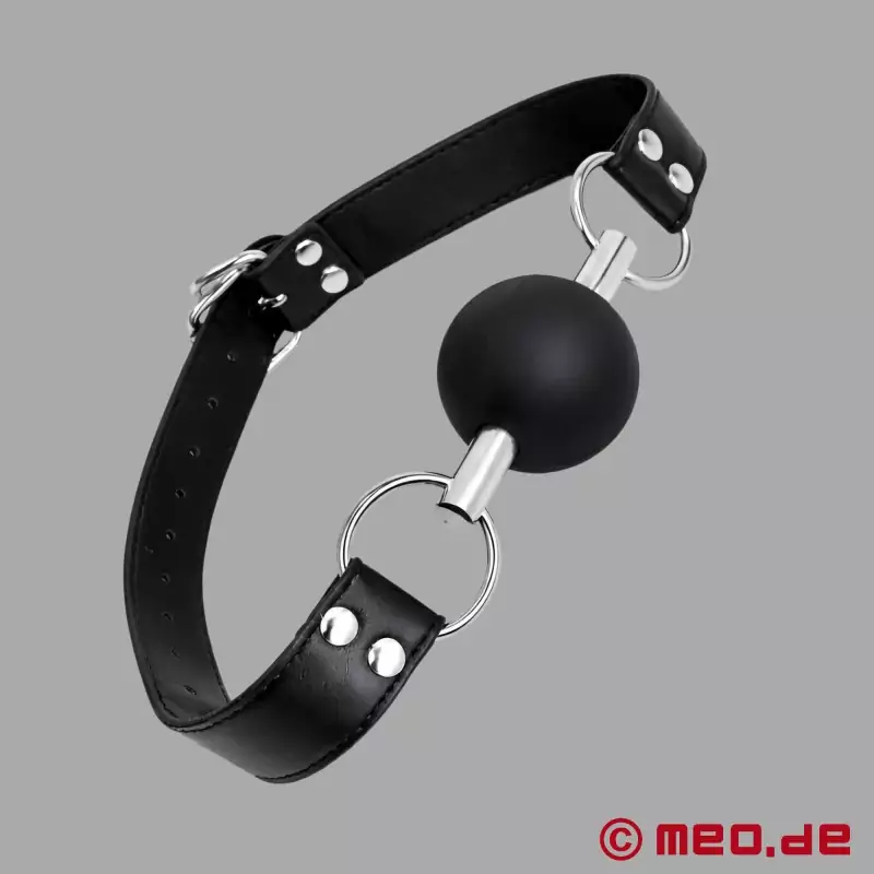 Notre bâillon à balle est disponible en trois tailles (40 mm, 45 mm et 50 mm de diamètre), ce qui te permet de choisir la taille qui convient le mieux à toi ou à ton esclave. Grâce à sa conception bien pensée, le bâillon maintient la bouche grande ouverte et favorise la salivation - un effet particulièrement apprécié des amateurs de bâillons BDSM classiques.