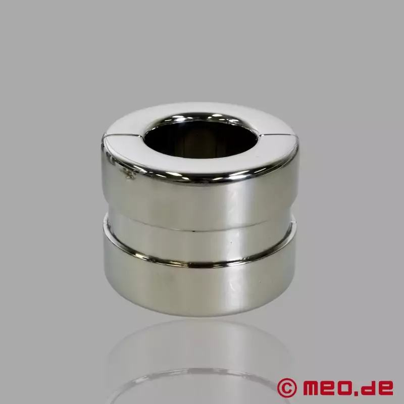 Le BallCommander™ de MEO® révolutionne le monde des ballstretchers en acier inoxydable. Bien que ces ballstretchers classiques tirent les testicules vers le bas grâce à leur poids et étirent le scrotum de manière extrême, ce qui les rend spéciaux, c'est qu'ils sont verrouillables, soit avec un cadenas classique, soit avec notre serrure à minuterie numérique. Six tailles sont disponibles, allant de 324 grammes à 1 270 grammes. Grâce à sa conception verrouillable, le BallCommander™ offre une combinaison incomparable de contrôle, de plaisir et d'étirement intense du scrotum.