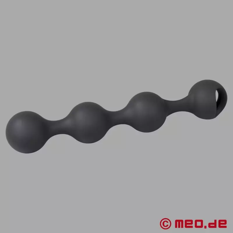 Avec une longueur de 25,3 cm et un diamètre de 3,8 cm, ces boules anales sont idéales pour les utilisateurs confirmés ou les débutants courageux. La tige mesure 1,2 cm d'épaisseur et l'anneau de 3,8 cm tient bien en main. Cette série de boules offre déjà une dilatation anale perceptible et est idéale pour intensifier votre entraînement anal personnel.