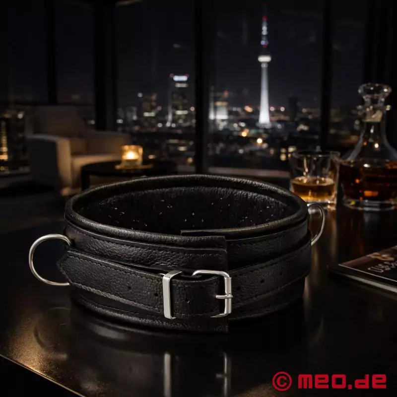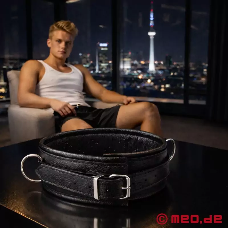 Si tu accroches une laisse au collier d’esclave, un simple petit coup sur la laisse est clairement ressenti par le soumis au niveau du collier. Tu peux bien sûr l’utiliser comme un collier de chien restricteur lors de tes jeux de petits chiens (Puppy Play) ou comme un collier BDSM pour soumis particulièrement entêté. Le collier BDSM peut aussi être fixé sur la cuisse ou sur le bas de la jambe pour les séances de Bondage plus extravagantes. Il peut aussi être fixé sur le haut du bras si tu veux faire prendre à ton esclave une position contraignante de « Spread Eagle ». Par conséquent, tu peux utiliser le collier en cuir comme punition d’esclave, pour rééduquer sévèrement ton soumis lorsqu’il a fauté.