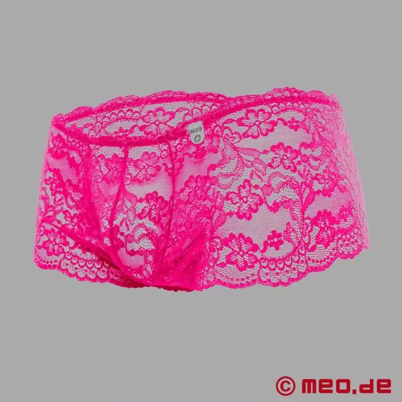 Coquin. Sexy. Confiant. En bref : « pretty in pink » ! Les Rose Lace Mini Shorts™ en rose vif sont une déclaration et bien plus que de simples sous-vêtements. Le mélange explosif d'érotisme et de puissance qui en résulte est une invitation à la séduction. Cette lingerie est faite pour les hommes qui aiment provoquer, séduire et se mettre en valeur avec couleur, style et attitude.