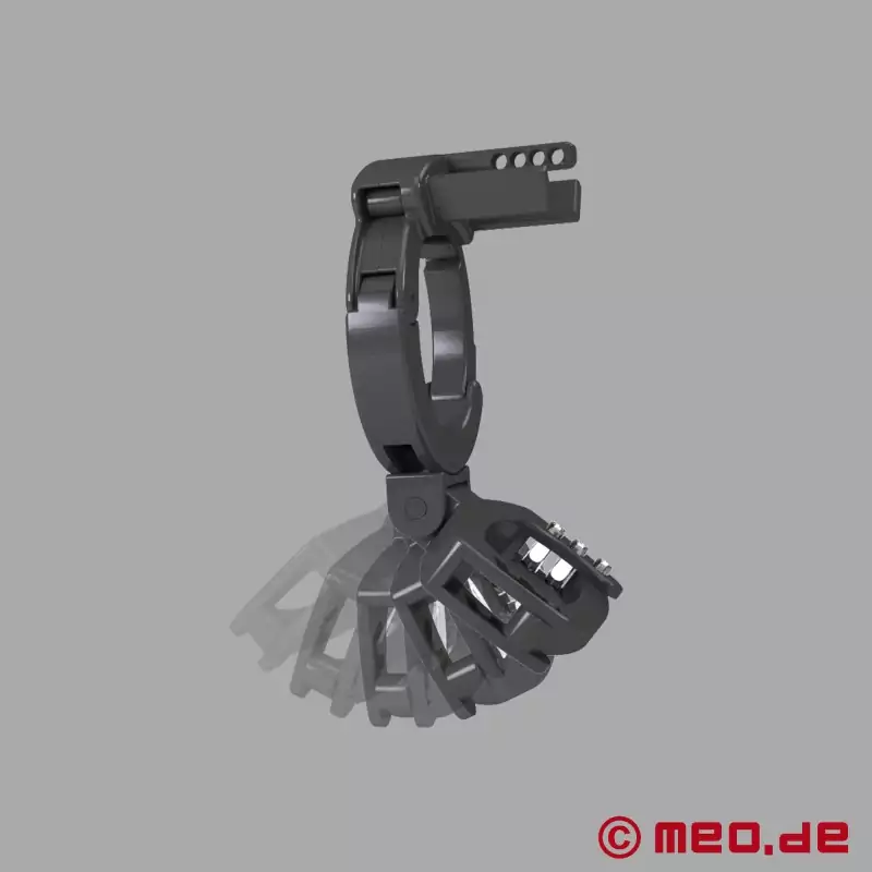 Pour ajuster la position à tes besoins et permettre une punition encore plus intense ou un contrôle sexuel plus strict, déplace l'écrase-testicules sur le côté. Il reste ainsi parfaitement en place et ne risque pas de glisser ou de s'échapper.