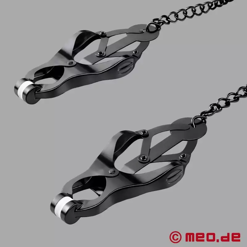 Les luxueux Clover Clamps de MEO ®, également appelés pinces à tétons japonaises, peuvent être placés à de nombreux endroits du corps. Pour une stimulation intense, nos pinces BDSM peuvent être utilisées sur les mamelons, le clitoris ou le scrotum. L'imagination n'a pas de limites.
