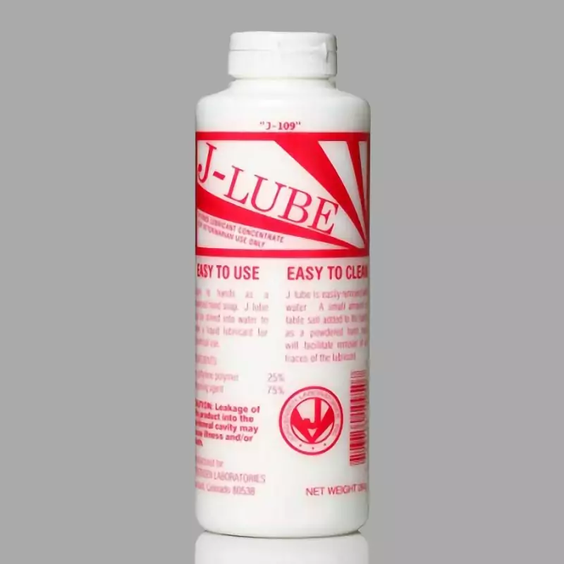 A J Lube különlegessége, hogy könnyen feloldható vízben, és így alkalmazkodó megoldást kínál a különböző igényekhez. Egy üveg porral jelentős mennyiségű kenőanyag állítható elő. Számos termékkel kompatibilis, így sokoldalúan felhasználható segédeszköz. A 25% polietilénporból és 75% dextrózból álló termék különösen hatékony, amikor nagy tárgyakat kell kis nyílásokba helyezni. A J-Lube eredetileg az állatgyógyászatban való felhasználásra fejlesztették ki, és könnyű használhatóságával és sokoldalúságával nyűgöz le.