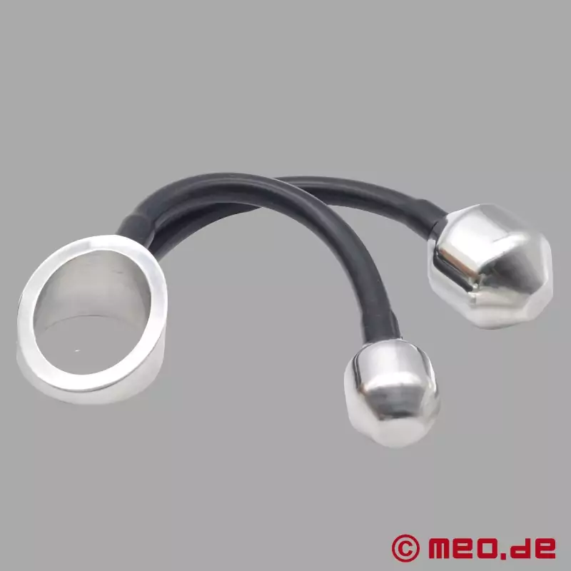 Der Penisring mit 2 schweren Plug-Gewichten beschert mir unnachahmliche Feelings! Der Penisring sorgt für eine Stauung des Blutes im Penis. Die zusätzlich anal eingeführten Plug-Gewichte stimulieren dabei meinen Schließmuskel und verstärken somit meine härtere Erektion. Bei jeder Bewegung meines Penis werden dann der Schließmuskel und die Prostata erregend massiert. Man kannst die gewichtigen Plugs auch einfach nur baumeln lassen. Auch so wird der Blutstau-Effekt wirkungsvoll unterstützt, sodass ich noch länger beim Sex durchhalten kann.