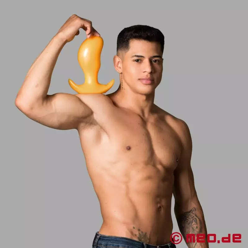 A sárga butt plug kiváló minőségű szilikonból készült, bársonyosan puha felülettel. Az anyag kellemes érzés a bőrön, méretstabil, ugyanakkor elég rugalmas ahhoz, hogy kényelmes behelyezést tegyen lehetővé. Az eredmény egy olyan análdugó, amely kezdőknek és haladóknak egyaránt intenzív, mégis kontrollált érzést nyújt.