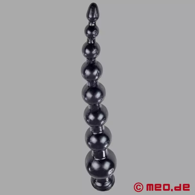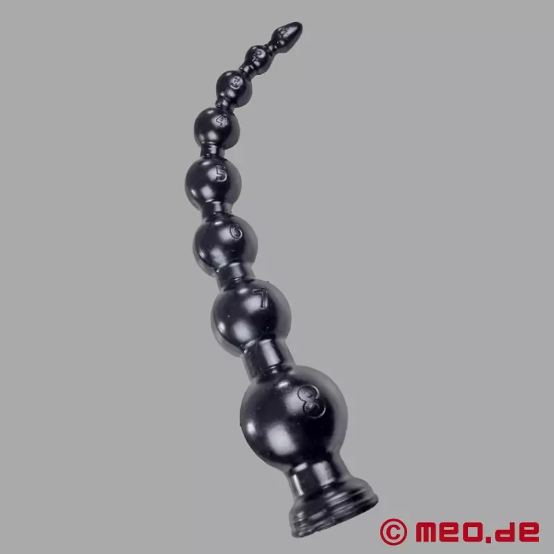 Golyóról golyóra a tiszta élvezet! A MEO ® Anal Depth Training termékcsalád nagyon hosszú BallsDeep™ dildója 45 cm hosszúságú. A golyók egyre nagyobbak, és annál intenzívebb feszültség- és relaxációs érzést nyújtanak, minél mélyebbre hatol a hosszú dildó, és minél többet mozog.
