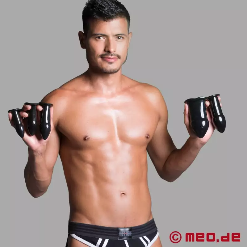 Ezek az anális nyújtók nem csak jól érzik magukat, de ideálisak a nagyobb popsi dugók, dildók vagy ökölvívás előkészítéséhez is. Kezdd a legkisebb változattal, és haladj felfelé a legnagyobbig, és addigra a végbélnyílásod eléggé ki lesz nyújtva ahhoz, hogy nagyobb tárgyakat is befogadhass.