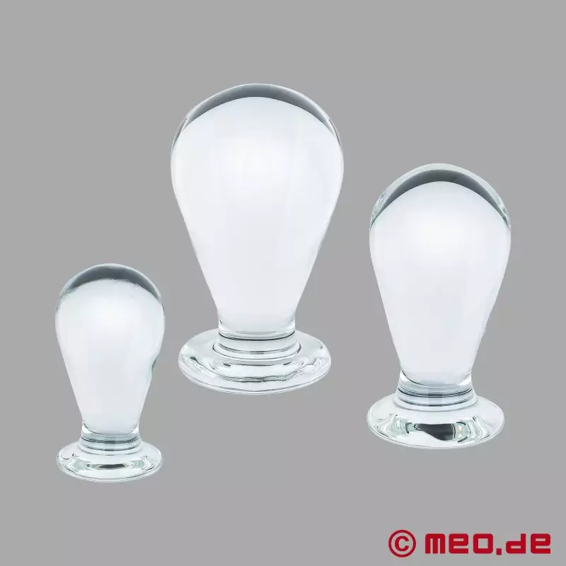 Ezzel az anális tágítás készlettel egész ökölre edzheted a végbélnyílásodat! A tartós anális tágításhoz való butt plugjaink lenyűgöznek anatómiailag tökéletes formájukkal és kivételes anyagukkal: az általunk használt törésálló boroszilikát üveg tükörsima felületű, és különösen könnyen behelyezhető a végbélnyílásba. Néhány csepp EZ2FUCK, a MEO szilikon alapú síkosítójával még a három análdugó közül a legnagyobb is gond nélkül behelyezhető.