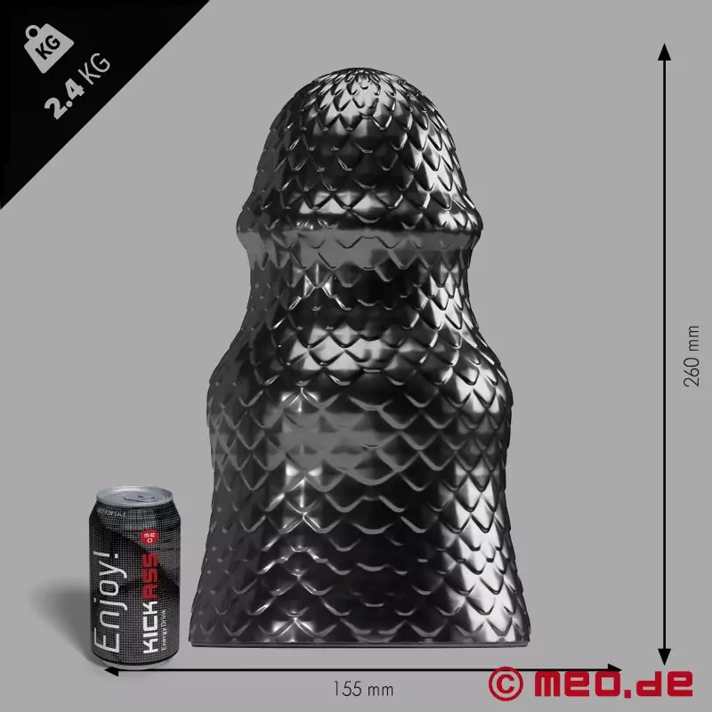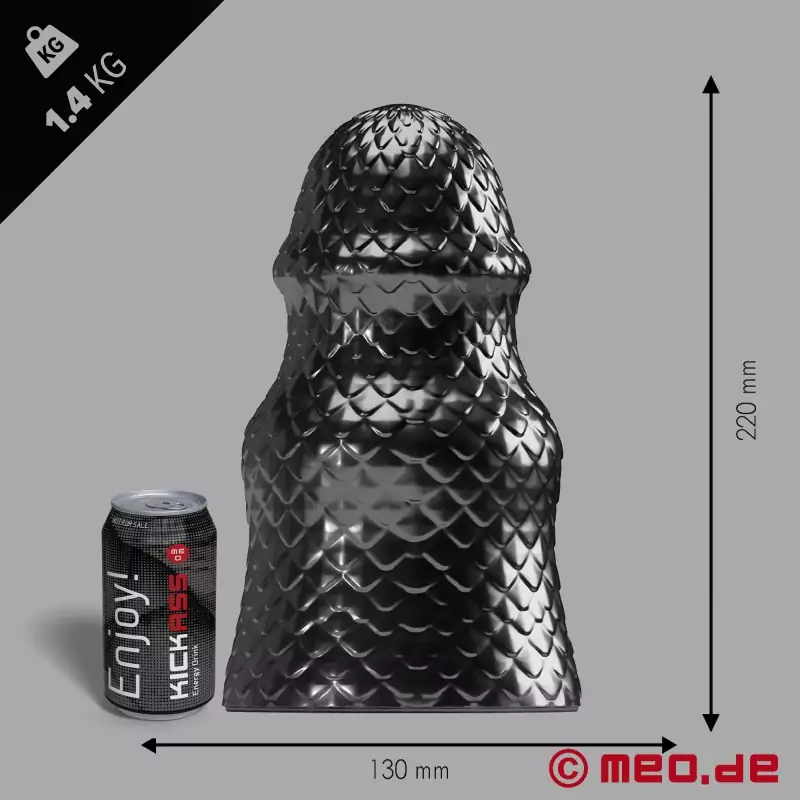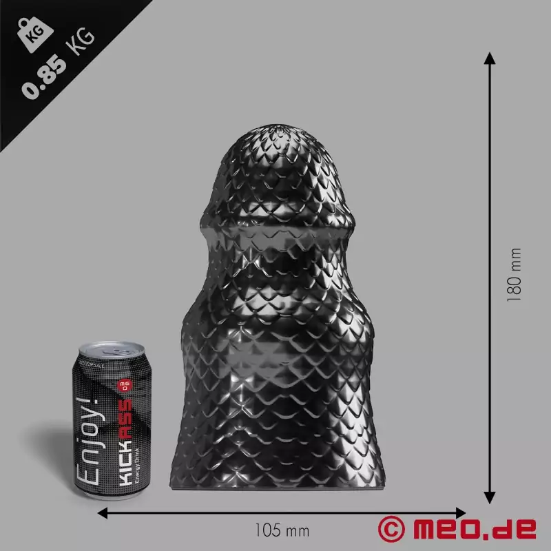 Az extrém anális tágítás és az úgynevezett anális tágítás megfelelő butt plugokat igényel, mint például ez az extrém anális játék. Nemcsak a mérete és a súlya lenyűgöző, hanem mindenekelőtt a különleges felületi struktúra, amelynek köszönhetően a síkosító különösen jól tapad és kevés súrlódást biztosít. Három méret (105 mm-től 155 mm ø-ig) közül választhatsz ennél a butt plug-on .