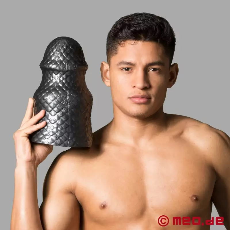 Az extrém anális tágítás és az úgynevezett anális tágítás megfelelő butt plugokat igényel, mint például ez az extrém anális játék. Nemcsak a mérete és a súlya lenyűgöző, hanem mindenekelőtt a különleges felületi struktúra, amelynek köszönhetően a síkosító különösen jól tapad, és kevés súrlódást biztosít. Tökéletes a férfiak tartós anális tágításához! Három méret közül lehet választani. Modellünk egyébként igazán nagyot szeret, és az igazán nagy, XL-es méretű butt plugot választotta.