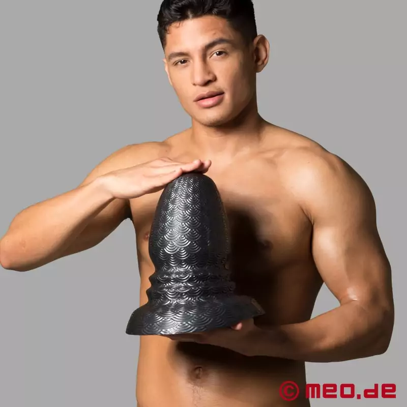 A tökéletes análdugó az anális tágításhoz ez a nagy és nehéz butt plug, amelyet három méretben kínálunk (135 mm-től 200 mm ø-ig). Különösen érdekes tulajdonsága a speciális felületi struktúra, amelynek köszönhetően a síkosító különösen sokáig megtapad, és kevés súrlódást biztosít. Tökéletes a férfiak hosszan tartó anális tágításához.
