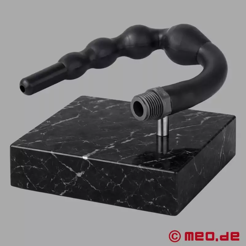 Was zuerst auffällt: Das Teil ist wie aus einem Guss. Keine Naht, kein Übergang, nichts Scharfes oder Eckiges. Das ist wohl die beste Voraussetzung für eine Spülung dieses empfindlichen Körperteils. Hier hat sich der Hersteller MEO wirklich Mühe gegeben. Das Teil wird einfach auf den Duschschlauch geschraubt, nachdem der Duschkopf entfernt wurde. Fühlt sich wunderbar an, wenn diese Analdusche ganz eingeführt wurde und das warme Wasser läuft!