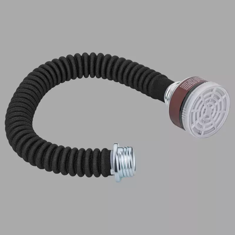 Az 50 cm hosszú, bordázott gázmaszk tömlő rugalmas gumiból készült, és mindkét végén tömör fémszállal rendelkezik. Ezek lehetővé teszik a biztonságos csatlakozást az Obedience™ gázmaszkhoz, valamint a hozzá tartozó gázmaszkszűrőhöz vagy más kompatibilis termékekhez.