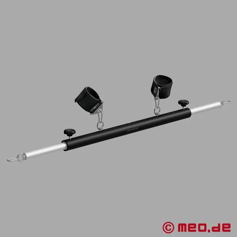 Az állítható terelőrúd nagyobb kontrollt biztosít, miközben engedelmes partnerének kevesebb mozgásteret enged - a nagyobb élvezet érdekében a kötöttség alatt. Ez az innovatív feszítő rúd a szigorú korlátozások és a kreatív BDSM forgatókönyvek kulcsfontosságú eleme. Szélessége teleszkóposan és fokozatmentesen 60 és 110 cm között bővíthető - pontosan addig, ameddig csak szüksége van rá.