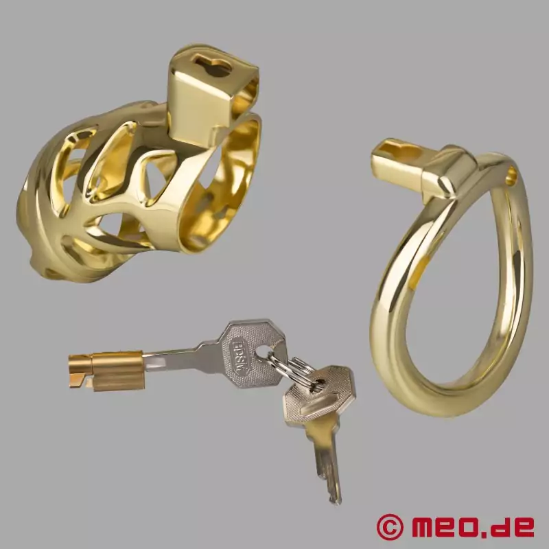 A Nopacha AurumLock™ több mint egy erotikus kiegészítő. Ez egy fényűző tisztasági ketrec olyan férfiak számára, akiknek fontos az irányítás, a dominancia és az esztétika. Kiváló minőségű, aranyozott alumíniumból készült, és az elegáns designt a funkcionális szilárdsággal ötvözi. Bár úgy néz ki, mintha milliárdosoknak vagy oligarcháknak tervezték volna, ez a férfi tisztasági öv bárki számára alkalmas, aki komolyan veszi a tisztaságot - akár BDSM-kontextusban, akár keyholder-kapcsolatban, akár önfegyelem céljából.