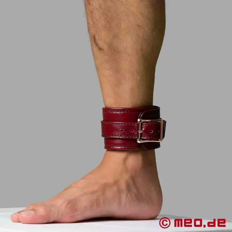 Kompromisszummentes elegancia, maximális kényelem és magas funkcionalitás jellemzi ezeknek a bordó, japán marhabőrből készült, báránynappabőr béléssel ellátott boka bilincseknek a kialakítását. A MEO®, Németország egyik legtapasztaltabb BDSM-termékgyártója a Noblesse kollekcióhoz egyedi boka bilincseket készít, amelyek a legapróbb részletekig tökéletesen átgondoltak a forma és a szín tekintetében.