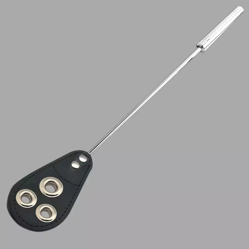 A Whipping Shovel ideális az intenzív fenekelési ülésekhez, és kiváló irányítást biztosít a masszív acél nyélnek köszönhetően. A bőrlapon lévő nagyméretű szemekkel ellátott kialakítás nemcsak vizuális hatást biztosít, hanem minden egyes ütésnél összetéveszthetetlen reccsenést is. Ez az ostor elég robusztus ahhoz, hogy különböző pozíciókban és a test különböző részein használható legyen, így nélkülözhetetlen tartozék minden BDSM-kapcsolatban.