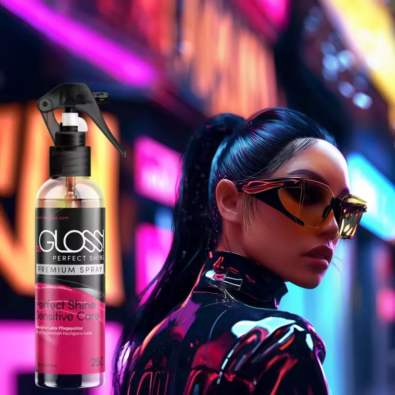 A beGLOSS® Perfect Shine™ prémium spray kivételes ápoló és polírozó termék a latex ruházathoz, és alkalmas a klórozott latex és a Datex számára is. Kifejezetten a beGLOSS® Wipe™ latex polírozó kendőhöz lett kifejlesztve, és ezzel a polírozó kendővel együtt teljes mértékben hatékony.