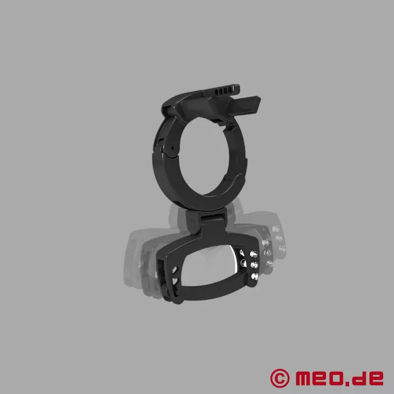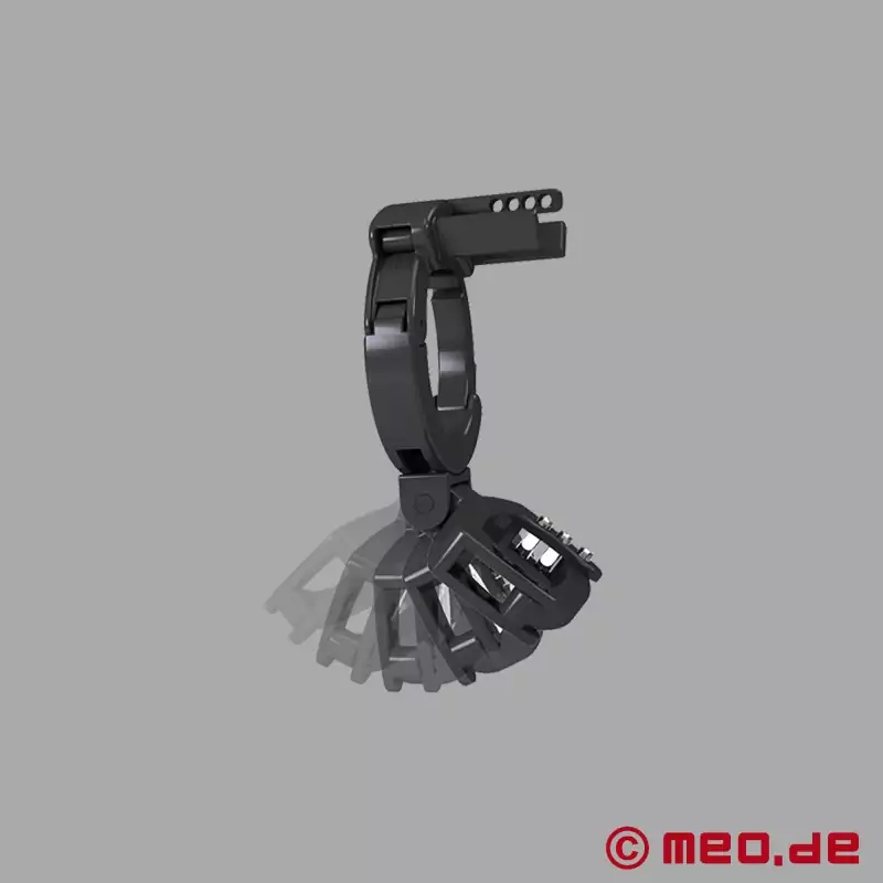 Ha a puszta tisztaság nem elég, és az engedelmes partner még szigorúbb bánásmódot érdemel, ez a chastity cage a megfelelő a következetes fegyelmezéshez. Ez az innovatív tisztasági ketrec a pénisz kompromisszummentes elektrostimulációját kombinálja a herék kezelésének egyedülálló lehetőségével, így biztosítva a maximális kontrollt és szükség esetén egy nagyon különleges "élvezetet". Kötelező darab minden BDSM-kedvelő számára, aki abszolút kontrollt szeretne élvezni a szexuális élvezet és az erekció felett.