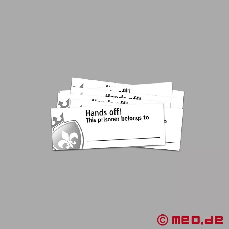 A két kulccsal ellátott robusztus fémzár és az öt eldobható műanyag tömítés megbízhatóan megakadályozza a szökési kísérleteket. Ezenkívül a tíz mellékelt címke az angol nyelvű "Hands off!" felirattal ellátott "Hands off! This prisoner belongs to ___" biztosítja, hogy mindig egyértelmű legyen, kié a chastity cage tartalma.