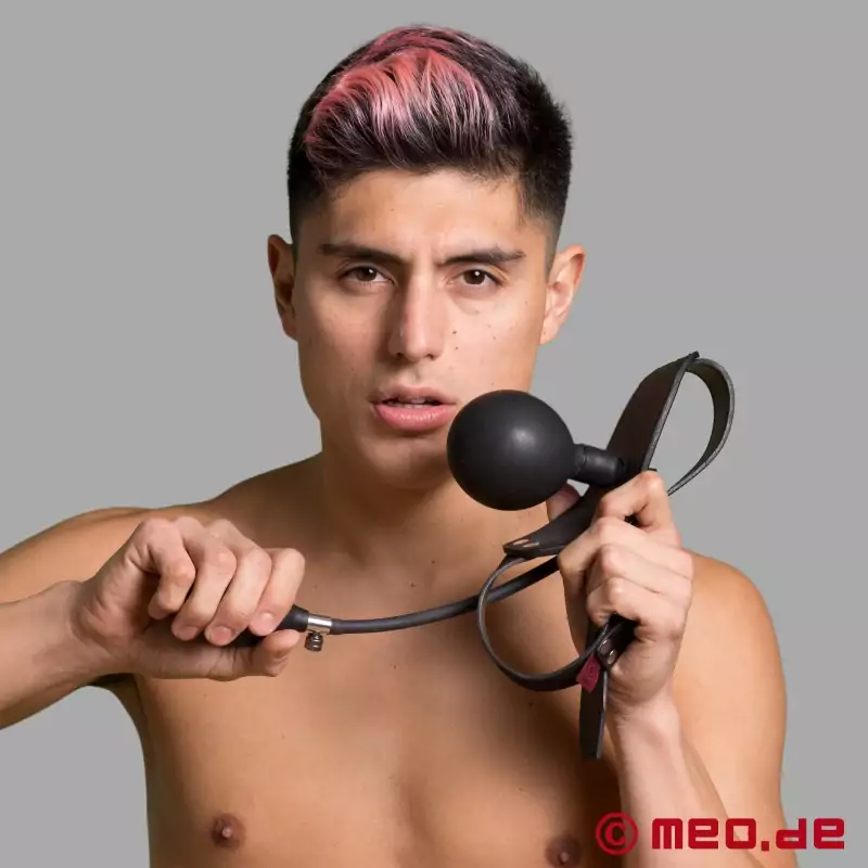 Felfújható ballonos szájkosarunk egyesíti a funkcionalitást és a kényelmet a különösen intenzív BDSM-élmény érdekében. A praktikus pumpagömb segítségével a szorítószáj egyénileg felfújható olyan méretűre, hogy teljesen kitöltse a szájat, és a teljes kontroll érzését adja. A beépített pánikszelepnek köszönhetően a levegő szükség esetén gyorsan és biztonságosan távozhat, így a szorítószáj mindig biztonságosan használható marad.