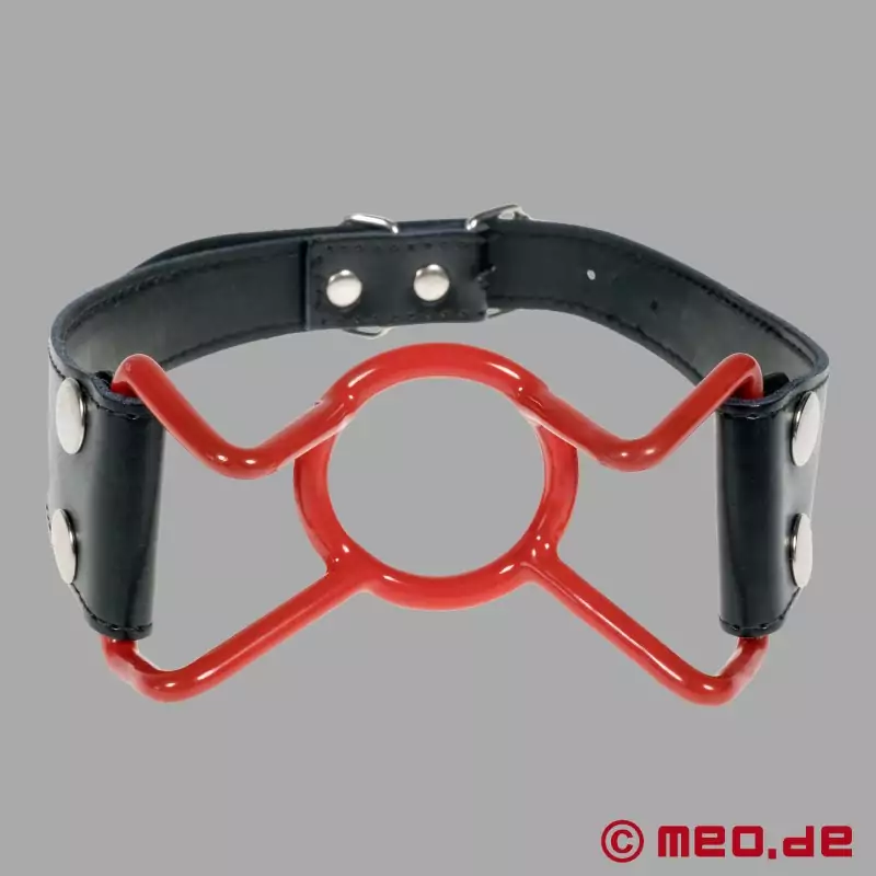 Ez a Cock Ring és a szorítószáj kombinációja szélesre, szélesre nyitva tartja a szájat. A "Mouth Wide Open" szorítószájunk gyűrűjét és az oldalán lévő fém merevítőket piros műanyag bevonattal fedtük be.