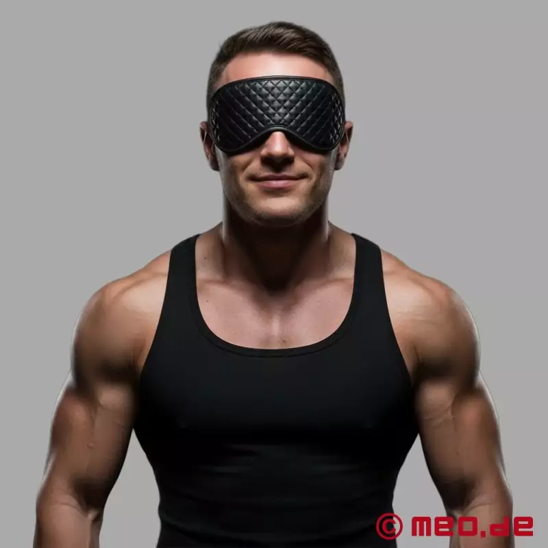 Az exkluzív széria bondage nyakörvet, bilincset, boka bilincs, BDSM pórázt és ezt a szemmaszkot tartalmazza. A gyémánt steppelésnek köszönhetően minden termék vizuálisan és technikailag is összehangolt.
