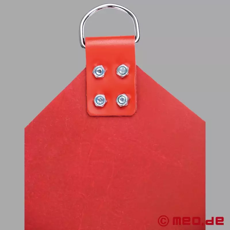 A legszebb szín természetesen a VÖRÖS - a fisting közösség színe! Ez a piros bőr fisting szőnyeg az egyik legnépszerűbb slingünk, amely kezdőknek és profiknak egyaránt alkalmas. A 4 rögzítési ponttal rendelkező piros sling-szőnyeg a legjobb bőrből készült, és stabil D-gyűrűkkel rendelkezik a mennyezet alá vagy a mobil sling-keretünkbe való felakasztáshoz. Többszörösen szegecselt rozsdamentes acél szegecsekkel és kiválóan kidolgozott, hogy garantálja a biztonságot, amelyre a slingben való szex közben szüksége van.