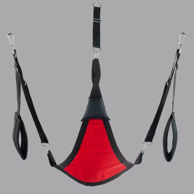 A sling egy bőrből vagy textilből készült "szerelmi hinta". Általában láncokkal rögzítik a szoba mennyezetéhez, és gyakran egy speciális tartószerkezetről, például a mi slingkeretünkről lóg. A passzív partner kényelmesen feküdhet a slingben, a lábát felemelve és útból kitéve. Egyes slingekben a fekvő személyt akár le is kötözhetik - a partnerek élvezhetik a tabuk nélküli szerepjátékot vagy fisting-szimulációt. A kényelmes fekvő pozíció közvetlen hozzáférést biztosít a fenékhez: Ön vagy a Felcsatolható-t használó aktív partnere dönthet arról, hogy egy dildó, egy farok vagy akár egy ököl hatol-e be.
